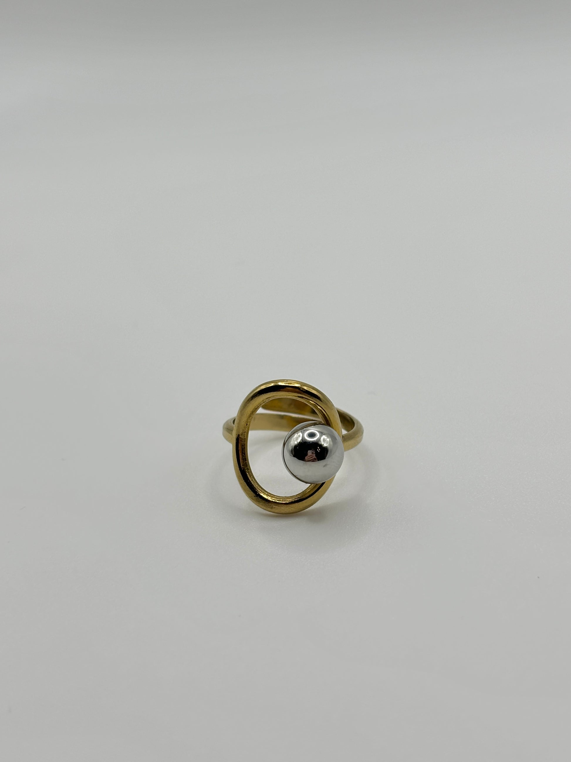 Detalii: Design geometric modern, cu elemente tip „beads” goale în interior (hollowed beads), oferind un aspect delicat, dar în același timp cool și minimalist. Finisajul lucios pune în valoare forma sculpturală a inelului. O piesă statement subtilă, potrivită pentru orice stil.